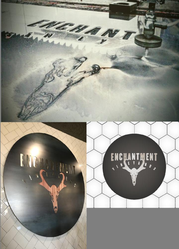 steel, stainless steel, and wood sign;<br>Designed, Waterjet cut, and Fabricated right here at All Metals